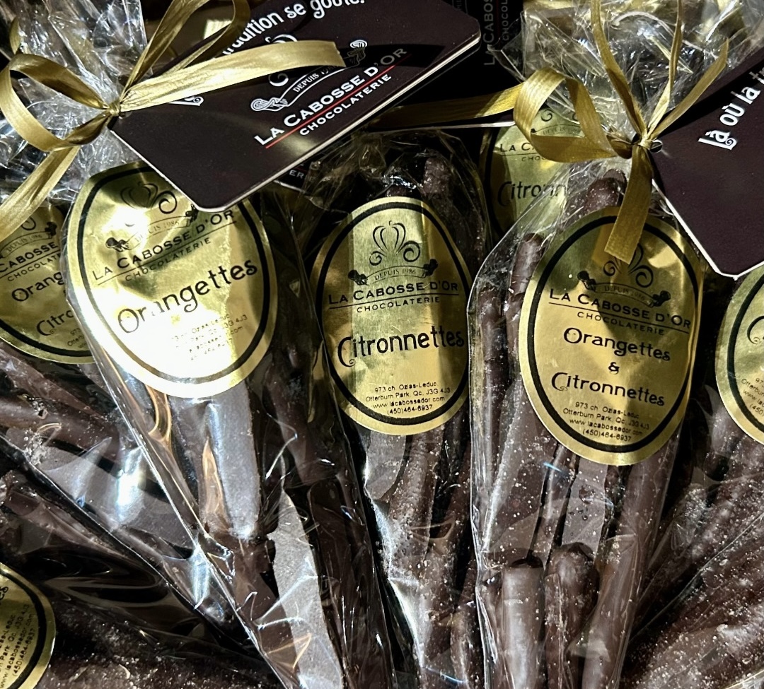 Écorces d’Orange et/ou Citron confites, enrobées de chocolat noir