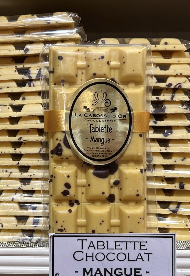 Délicieuse tablette de mangue mélangée au chocolat au blanc.